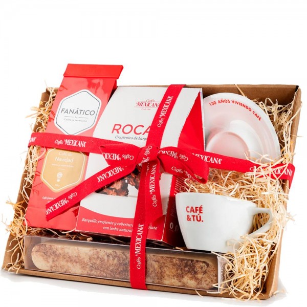 El regalo perfecto para una buena merienda o sobremesa navideña. Incluye nuestro mejor blend, el Café de Navidad Edición Limitada, las nuevas rocas crujientes de café, un rico turrón crujiente y la auténtica taza de Cafés La Mexicana