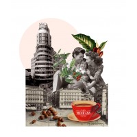 La reconocida artista madrileña Pils Ferrer ha captado en este collage nuestra pasión por Madrid y por el buen café que pasa de generación en generación.